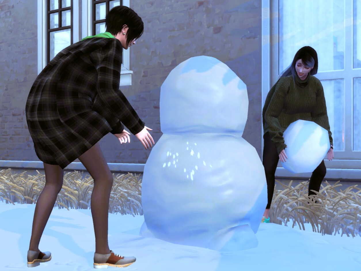 娘のカリンが遊びに来て一緒に雪だるまを作ってる。
