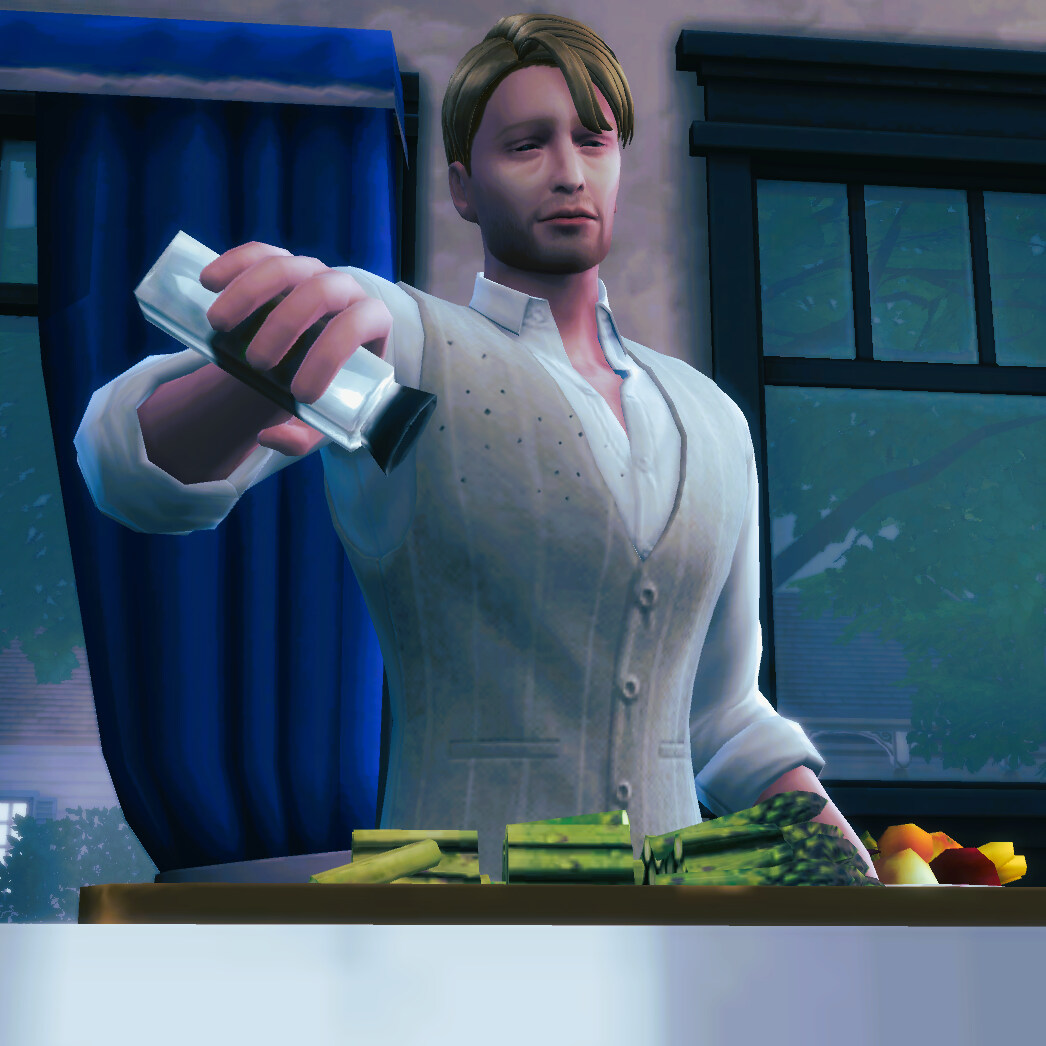 俳優マッツ・ミケルセン氏をモデルにしたシムを作って料理しよう。
