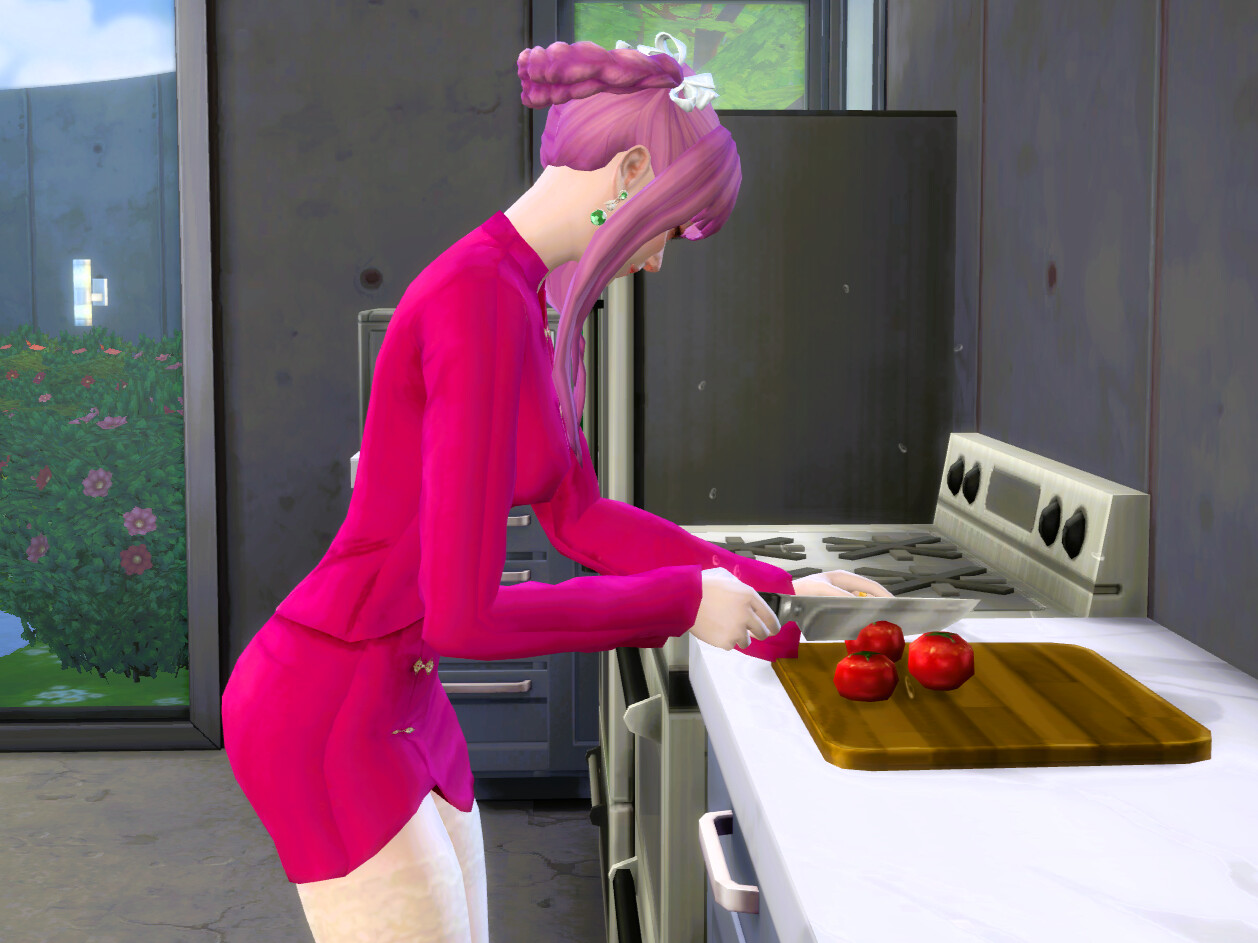 スレンダーな体型とお借りしたお洋服CCが相まって色気のある人妻感が感じられます。