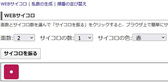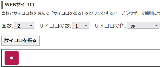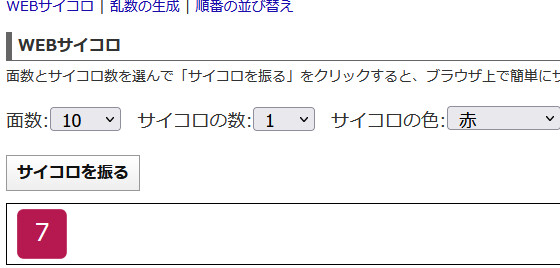 使用するダイス:Web Dice 面数が自由に決められて便利