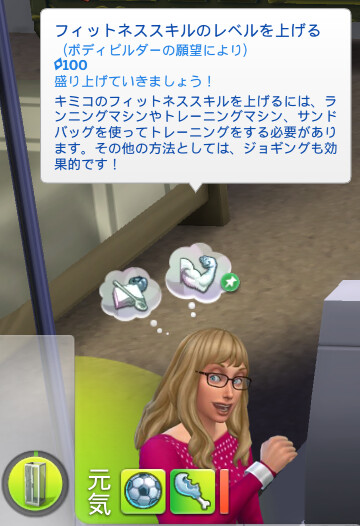 お、ジムなら「運動」の願望達成のためにフィットネススキルを上げられます。