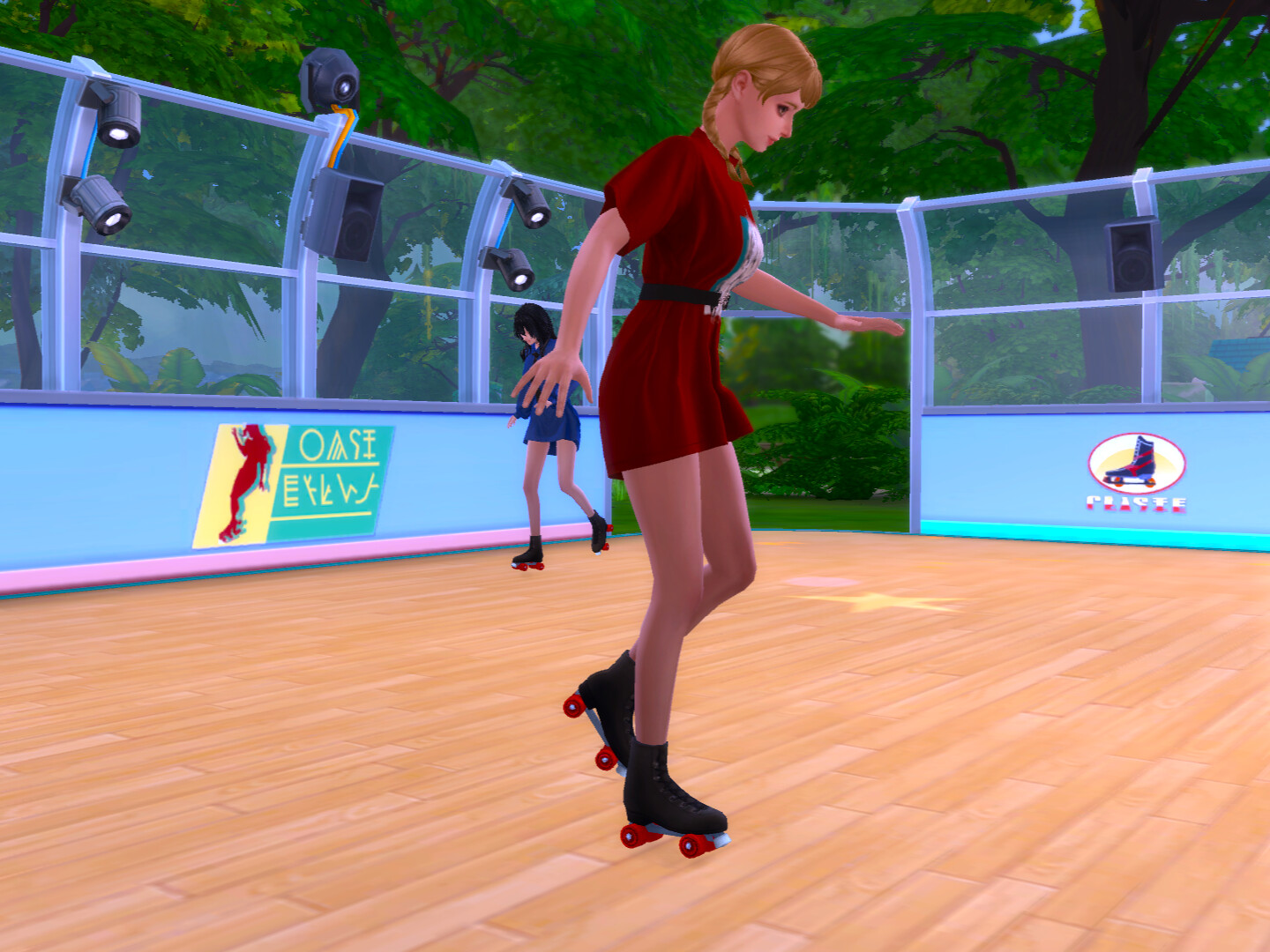 公園のそばにスケートリンクがあったので一緒に滑る。